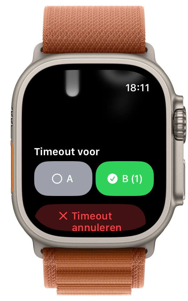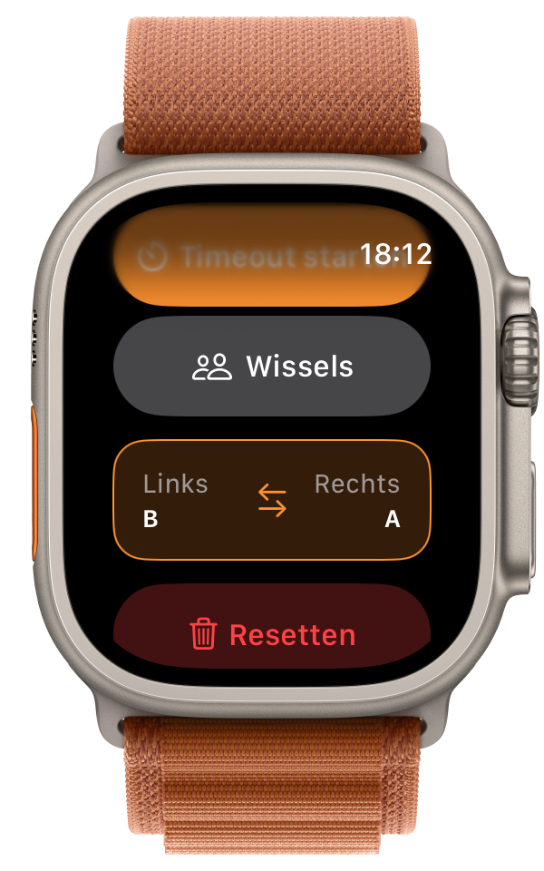 Start en registreert een 30-seconden timeout voor het gekozen team.
